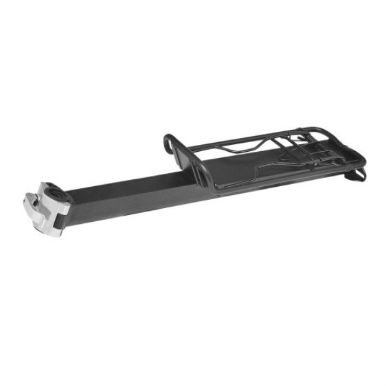 Bagażnik montowany bezpośrednio do sztycy siodełka. Odpowiedni np. do rowerów górskich i innych rowerów, w których zamontowanie zwykłego bagażnika jest niemożliwe lub utrudnione. Płytka mocująca na tylną lampkę i mocny pałąk do zamocowania przewożonego przedmiotu. Wykonany z blachy lakierowanej na czarno, system mocujący z aluminium. Wymiary powierzchni nośnej: 130x275 mm. Wymiary: Dł:500 mm.