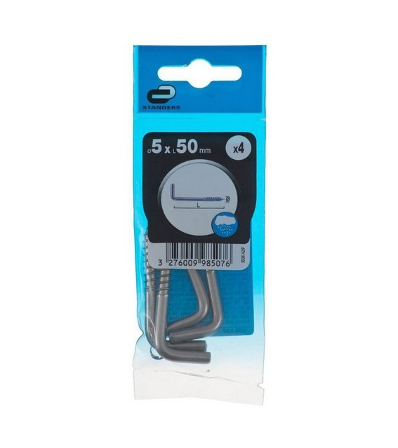 Hak śrubowy 5x50mm do przykręcania 4 szt stal nierdzewna fra