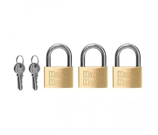 Z jednakowym zamkiem. Ten sam klucz może być używany do wszystkich dołączonych kłódek. Korpus z mosiądzu, pałąk ze stali hartowanej. Wymiary: Szer:40 mm.