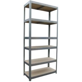 Wysokość 2250 mm Szerokość 900 mm Głębokość 400 mm Obciążenie na półkę 220 kg Ilość półek 6 Materiał wykonania stal / półki z płyty wiórowej Wykończenie ocynkowany Kolor srebrny Sposób montażu wciskany na zaczepy