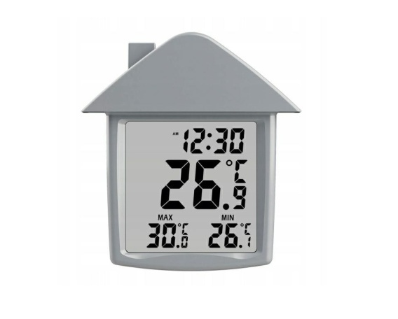 Termometr elektroniczny z zegrarem na zsawkę na szybę