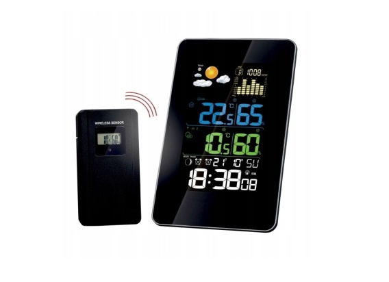 Stacja pogody, wykonana jest z wysokiej jakości tworzywa sztucznego w kolorze czarnym. Przedni panel imitujący taflę szkła, chromowana ramka oraz brak frontowych przycisków nadają stacji bazowej nowoczesny wygląd. Stacja bazowa wyposażona jest w duży, kolorowy, wysoko-kontrastowy wyświetlacz LCD, pozwalający w prosty sposób odczytywać wyświetlane na nim informacje. Jednostka bazowa i nadajnik, mogą być postawione na płaskiej powierzchni przy pomocy składanych nóżek lub powieszone dzięki dodatkowym otworom montażowym. Kolorowy wyświetlacz stacji może być zasilany dołączonym zasilaczem sieciowym, co pozwala na permanentne podtrzymanie podświetlenia.