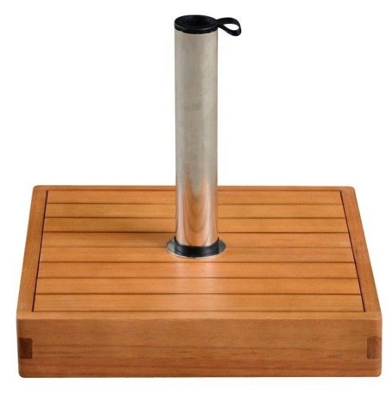 METALOWA podstawa parasola pokryta eleganckim drewnem zapewni stabilność Twojego parasola.