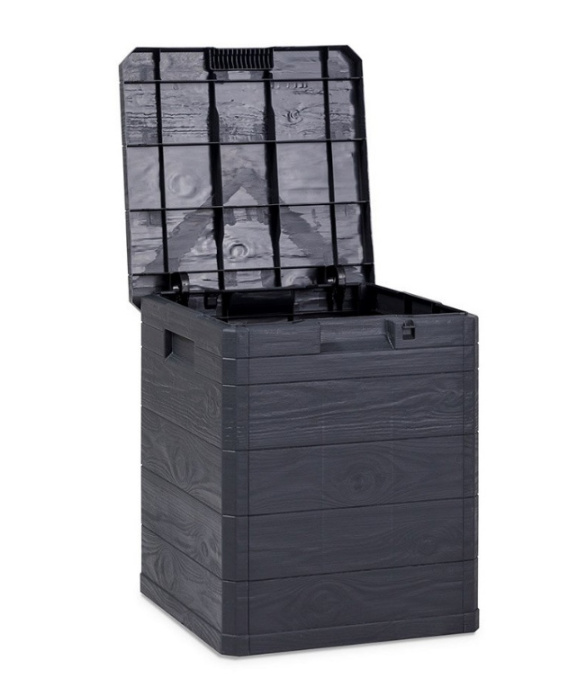Neutralny, ciemny kolor i proste wzornictwo sprawią, że produkt wtopi się w otoczenie. Uchwyty po obu stronach znacznie ułatwiają jej przeniesienie w razie potrzeby. Skrzynia ma również możliwość zamknięcia na kłódkę (do kupienia osobno).