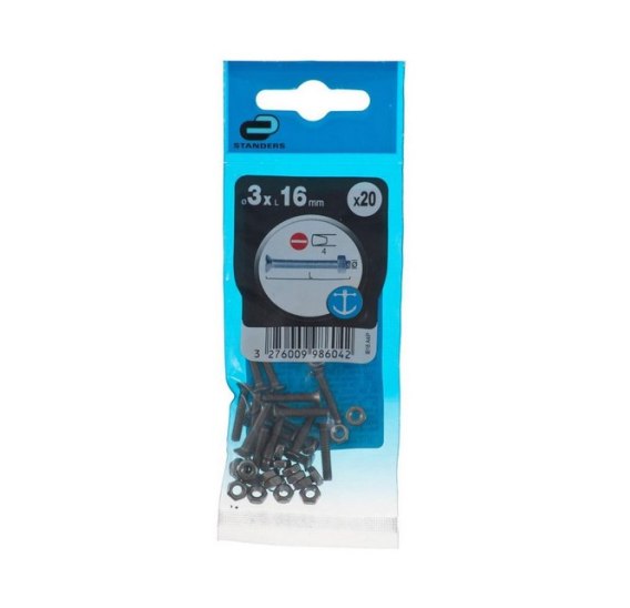 Śruba 3x16mm metryczny skok gwintu 20 szt łeb płaski