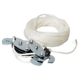 Do podnoszenia ciężkich przedmiotów. Mocna linka nylonowa i dwa wielokrążki. Podwójne haki utrzymują wielokrążki w miejscu. Maks. obciążenie: 150 kg.